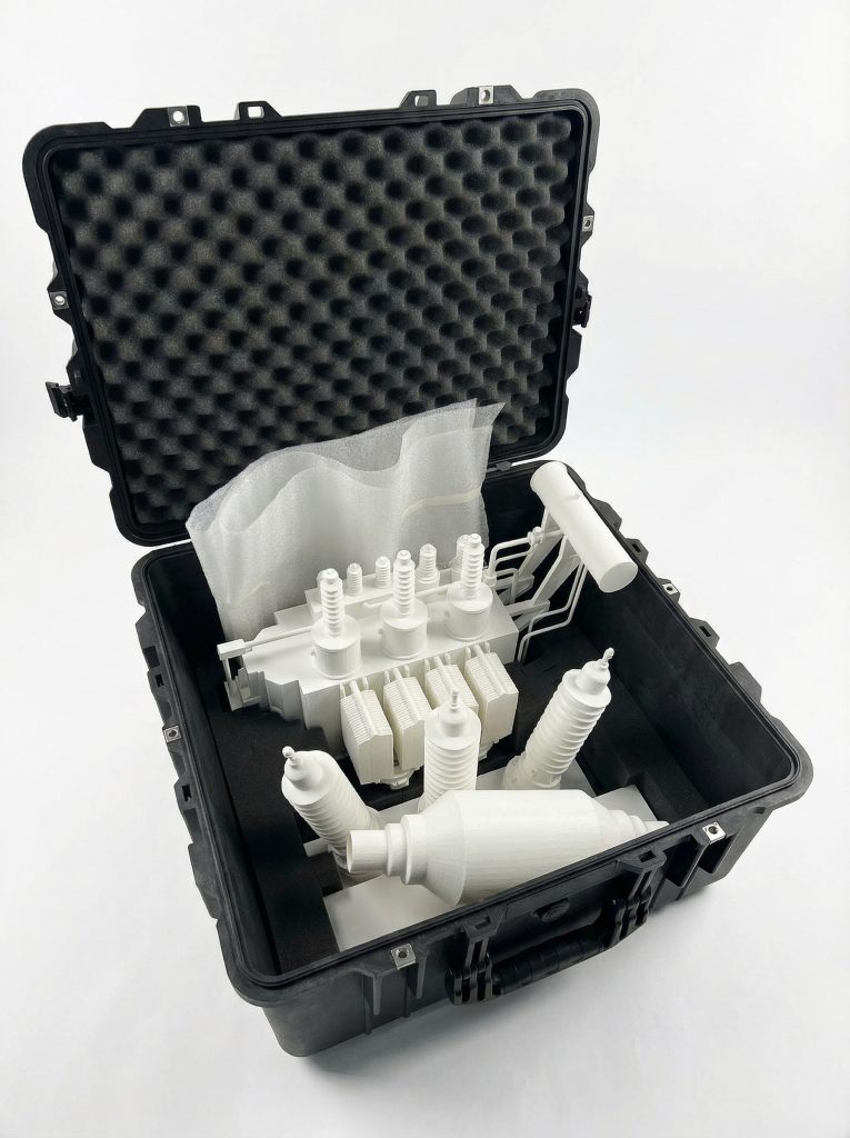 De sokkel bestaat uit twee inklapbare delen en is exact afgestemd op transport in een Pelican case. Dat vraagt om strakke toleranties, slimme scharnierpunten en een constructie die tegen een stootje kan. Alles klopt tot op de millimeter, van passing tot gewicht.